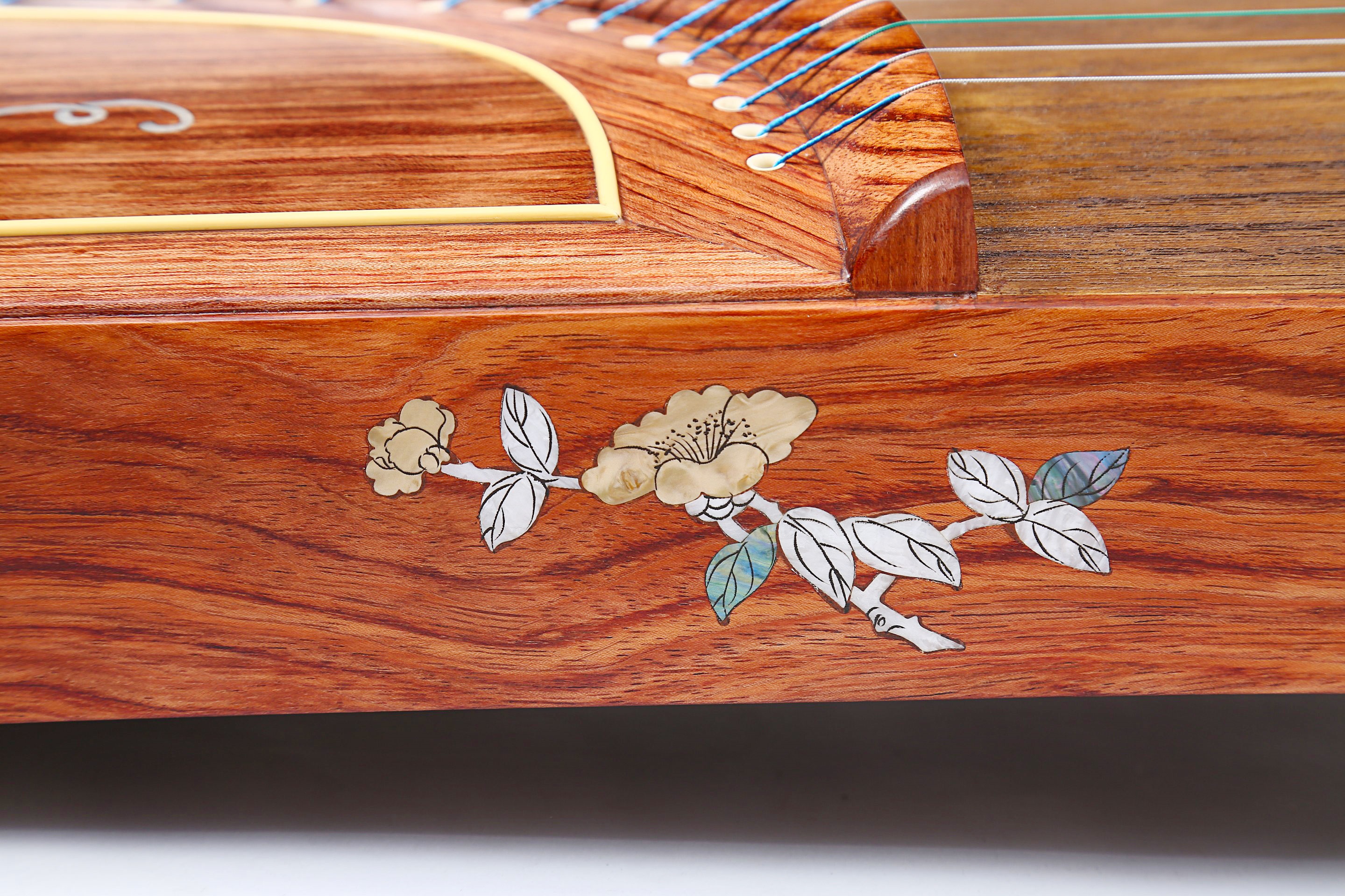 2、琴的边板、琴头、琴尾部分的木材是根据不同的档次各有差别,一般来说高级古筝会用红木,有些贵价古筝更会用上紫檀木等。