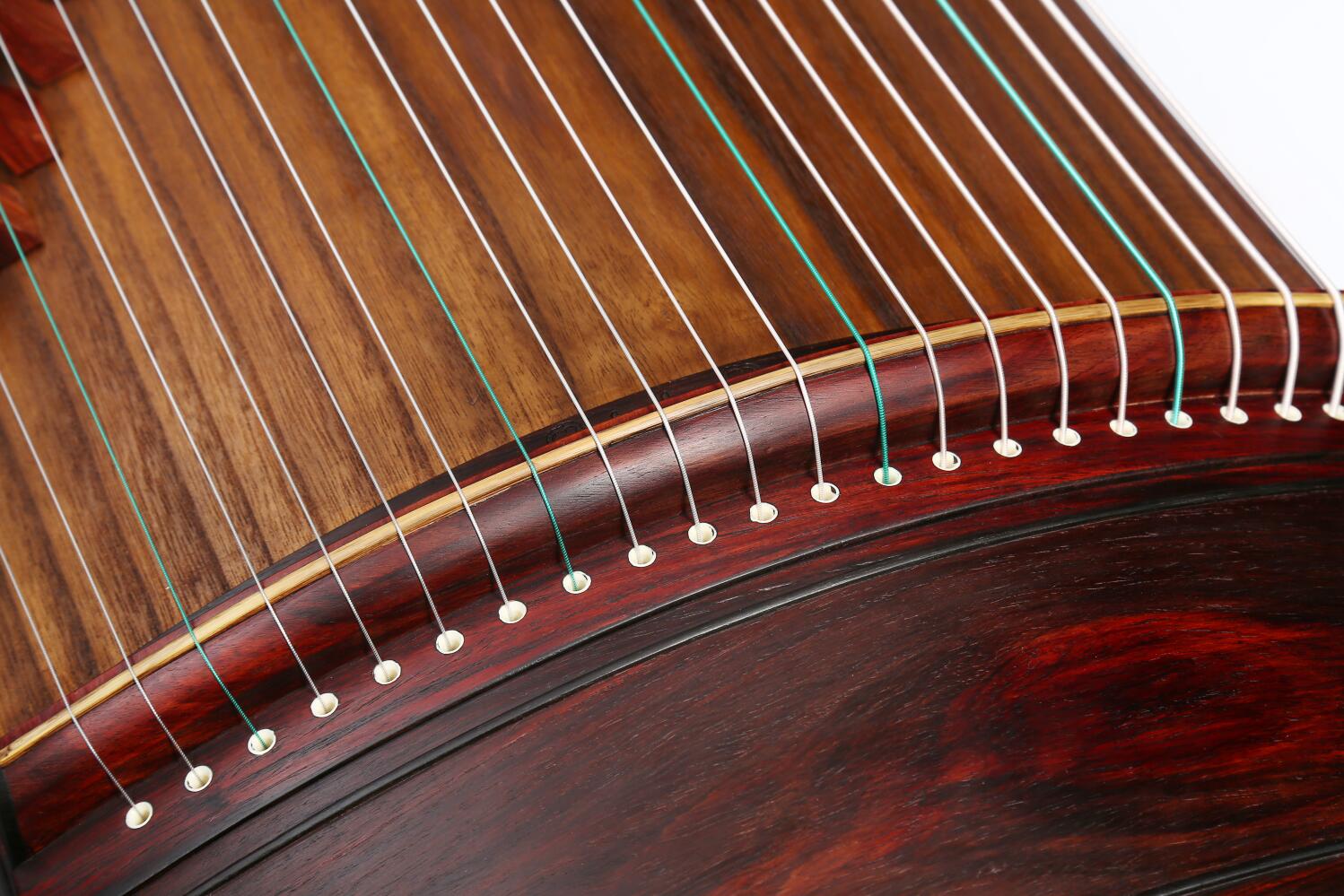 古筝做工,做工好的古筝美观,大气,没有明显划痕,油漆均匀,做工细腻,筝体没有歪斜现象。古筝胶合严密,弦轴没有生锈现象,无结疤、虫蛀等现象。