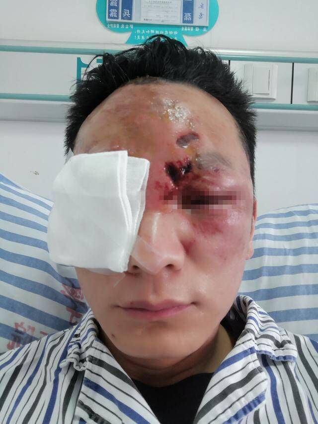 可是,让我万万没想到的是在注入开水时,疏通剂和开水混合成滚烫的混合物从管道爆出,直接喷到我脸上和眼睛上,根本来不及躲闪。疏通剂爆出来,导致我的脸、额头和眼睛严重受伤,疼痛万分,家人急得团团转,赶紧把我送往人民医院。由于伤情严重,重要的是先保住眼睛,人民医院让转往苏南专业眼科医院,诊断右眼无大碍,左脸角膜已烫伤发白视力模糊。