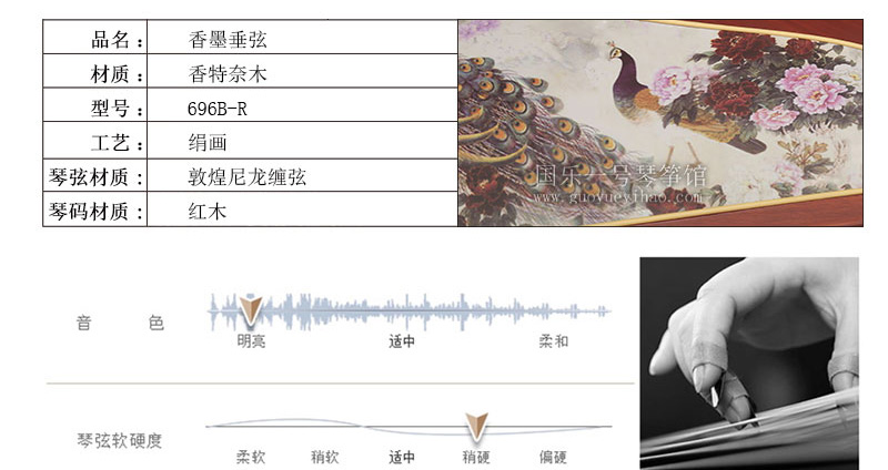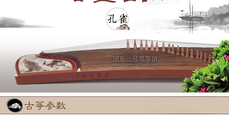 敦煌古筝696B-R-香墨垂弦孔雀